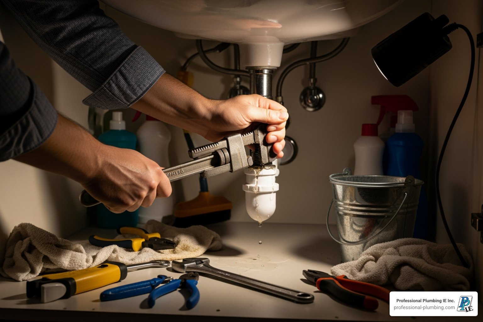Under-sink pipe leaks often come from loose connections or worn washers.